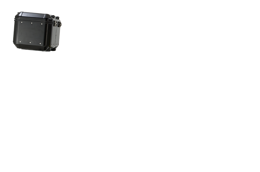 > INFOValigia MONOKEY® Trekker Dolomiti in alluminio verniciato nero, 30 lt. Utilizzabile sia come top case (compatibile con tutte le piastre MONOKEY®), che come valigia laterale (compatibile con i telai laterali PL_ _ / PLO_ _ / PLR_ _ / PLOR_ _)