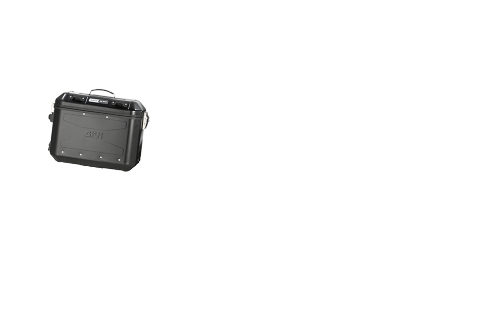 > INFOTrekker Dolomiti MONOKEY® case in aluminium finish, matt black painted, 30 ltr. Can be used as both a top-case (compatible with all Monokey plates), or as a side-case (compatible with PL_ _ / PLO_ _ / PLR_ _ / PLOR_ _ side frames)