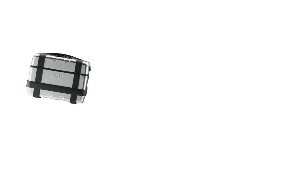> INFOTrekker Dolomiti MONOKEY® case in a natural aluminium finish, 30 ltr. Can be used as both a top-case (compatible with all Monokey plates), or as a side-case (compatible with PL_ _ / PLO_ _ / PLR_ _ / PLOR_ _ side frames)
