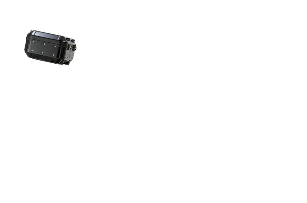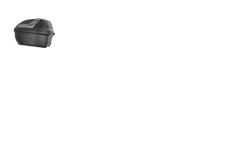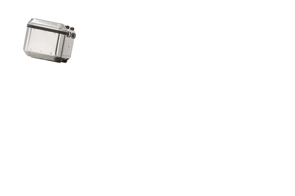 > INFORMAÇÕESBaú Trekker Dolomiti MONOKEY® em um acabamento de alumínio, pintado de preto 30 LTS. Pode ser usado tanto como um baú superior (compatível com todas as bases de Monokey), ou como um baú lateral (compatível com suportes laterais PL_ _ / PLO_ _ / PLR_ _ / PLOR_ _)