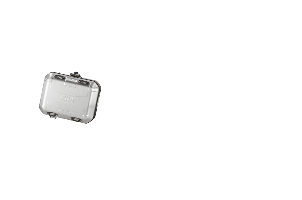 > INFOTrekker Dolomiti MONOKEY® case in a natural aluminium finish, 30 ltr. Can be used as both a top-case (compatible with all Monokey plates), or as a side-case (compatible with PL_ _ / PLO_ _ / PLR_ _ / PLOR_ _ side frames)