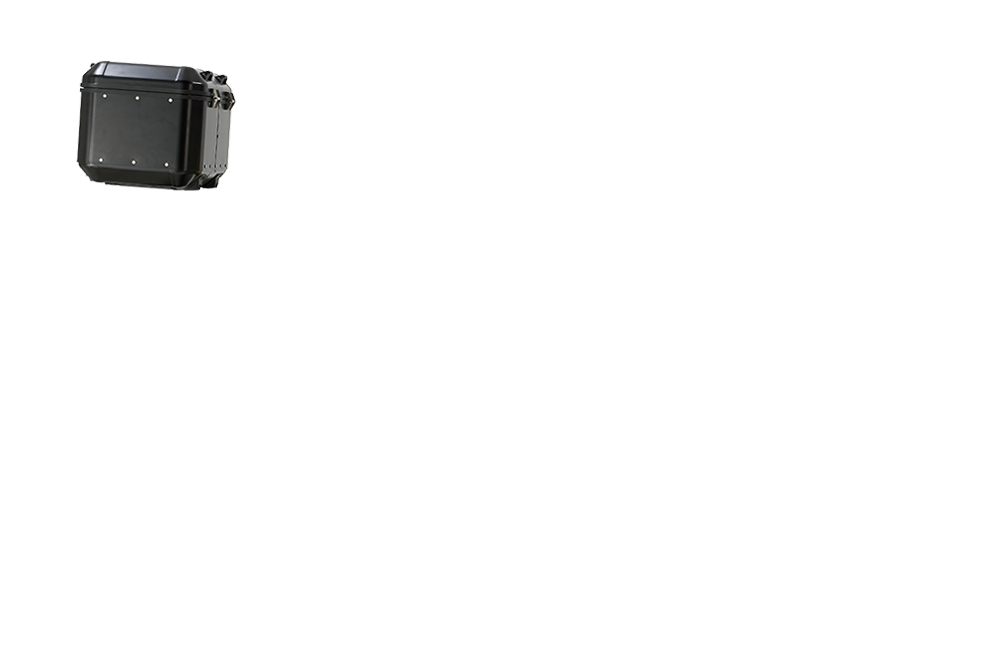 > INFOTrekker Dolomiti MONOKEY® case in aluminium finish, matt black painted, 30 ltr. Can be used as both a top-case (compatible with all Monokey plates), or as a side-case (compatible with PL_ _ / PLO_ _ / PLR_ _ / PLOR_ _ side frames)