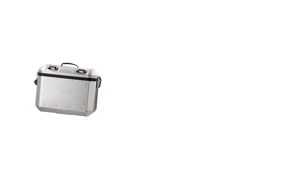 > INFOValigia MONOKEY® Trekker Dolomiti in alluminio naturale, 30 lt. Utilizzabile sia come top case (compatibile con tutte le piastre MONOKEY®), che come valigia laterale (compatibile con i telai laterali PL_ _ / PLO_ _ / PLR_ _ / PLOR_ _)
