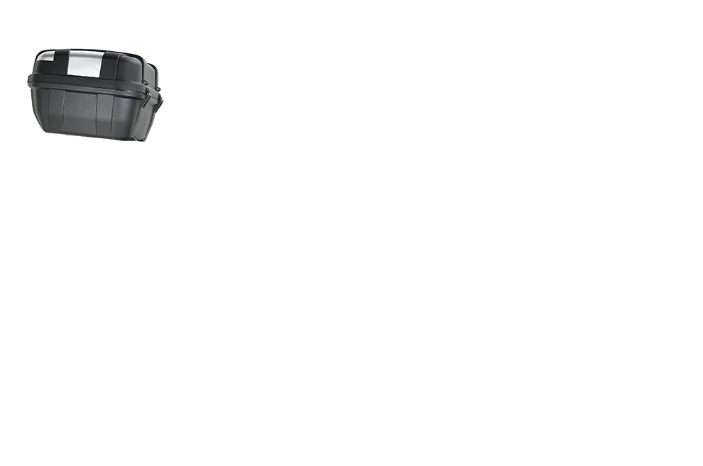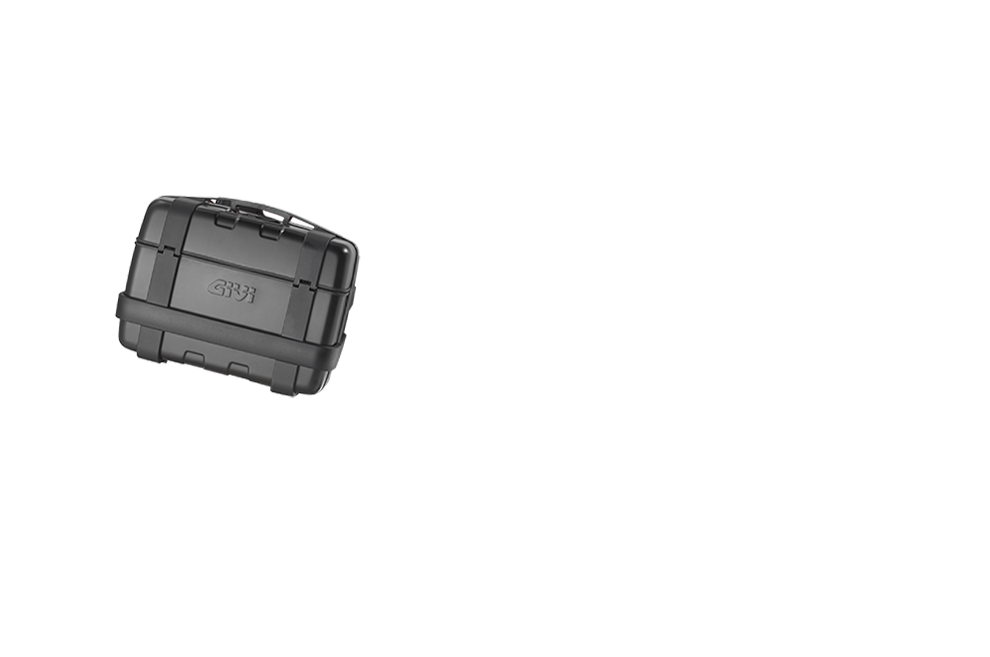 > INFOValigia MONOKEY® Trekker Dolomiti in alluminio verniciato nero, 30 lt. Utilizzabile sia come top case (compatibile con tutte le piastre MONOKEY®), che come valigia laterale (compatibile con i telai laterali PL_ _ / PLO_ _ / PLR_ _ / PLOR_ _)