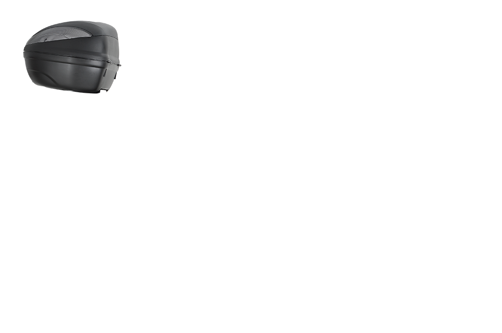 > INFOBaúl MONOLOCK® 47 L. (negro) con catadióptricos rojo. Incluye parrilla y kit de fijación universal