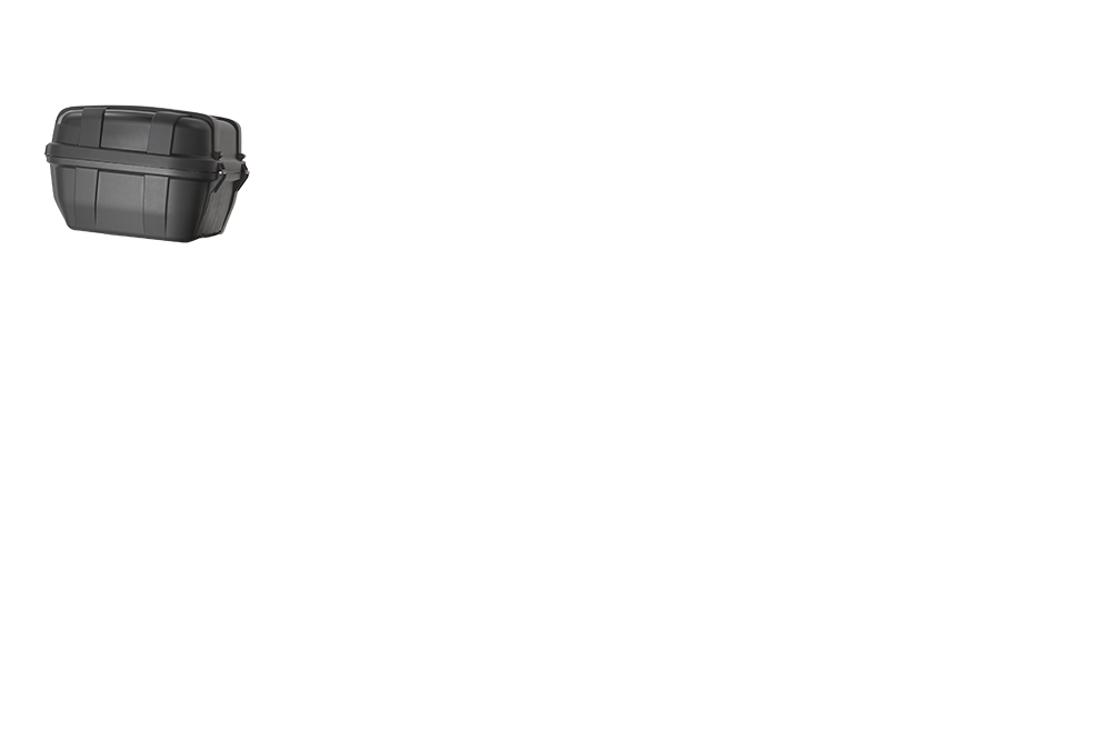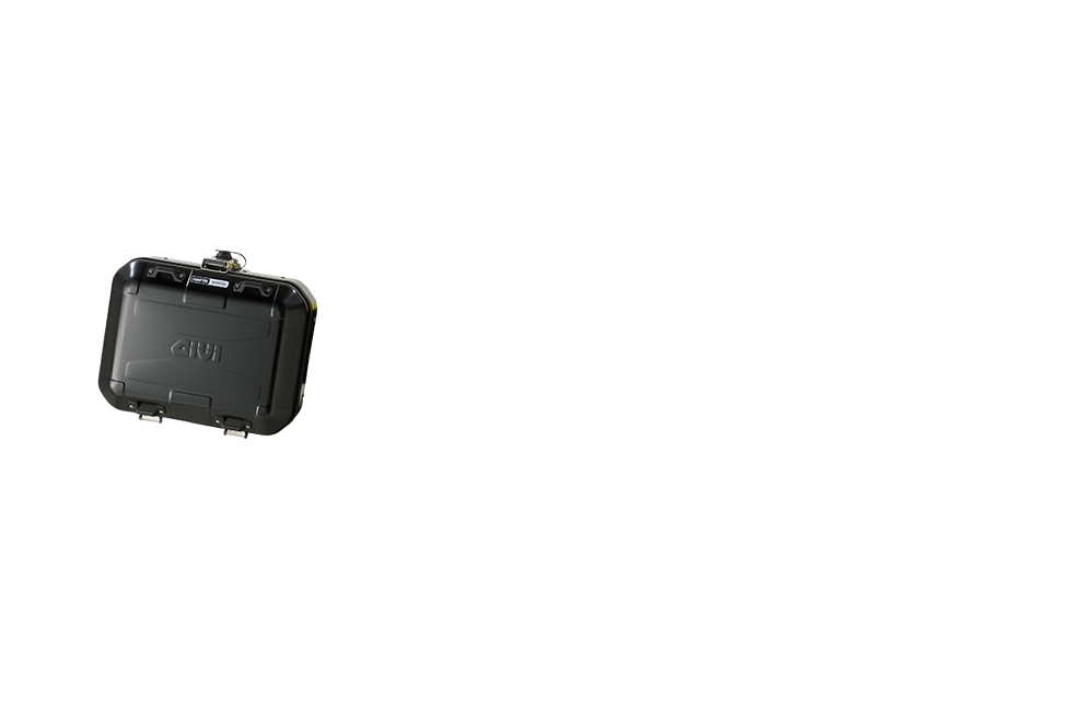 > INFOMaleta MONOKEY® Trekker Dolomiti en aluminio acabado negro, 30 L. Utilizable ya sea como maleta central (compatible con todas las parrillas MONOKEY®), que como maleta lateral (compatible con los soportes laterales PL_ _ / PLO_ _ / PLR_ _ / PLOR_ _)