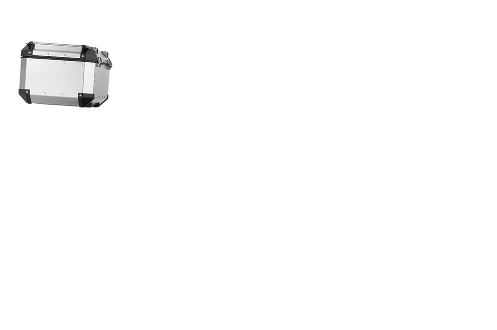 > INFOMaleta MONOKEY® Trekker Dolomiti en aluminio natural, 30 L. Utilizable ya sea como maleta central (compatible con todas las parrillas MONOKEY®), que como maleta lateral (compatible con los soportes laterales PL_ _ / PLO_ _ / PLR_ _ / PLOR_ _)