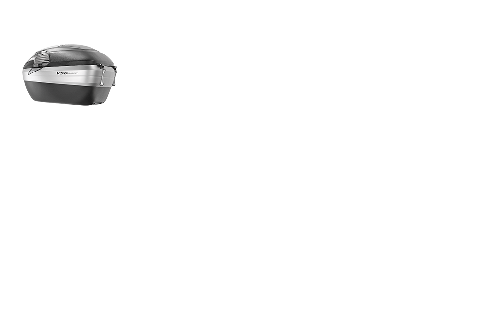 > INFOBaúl V56 MAXIA4 negro con tapa negra, catadióptricos ahumados y acabado en aluminio anodizado