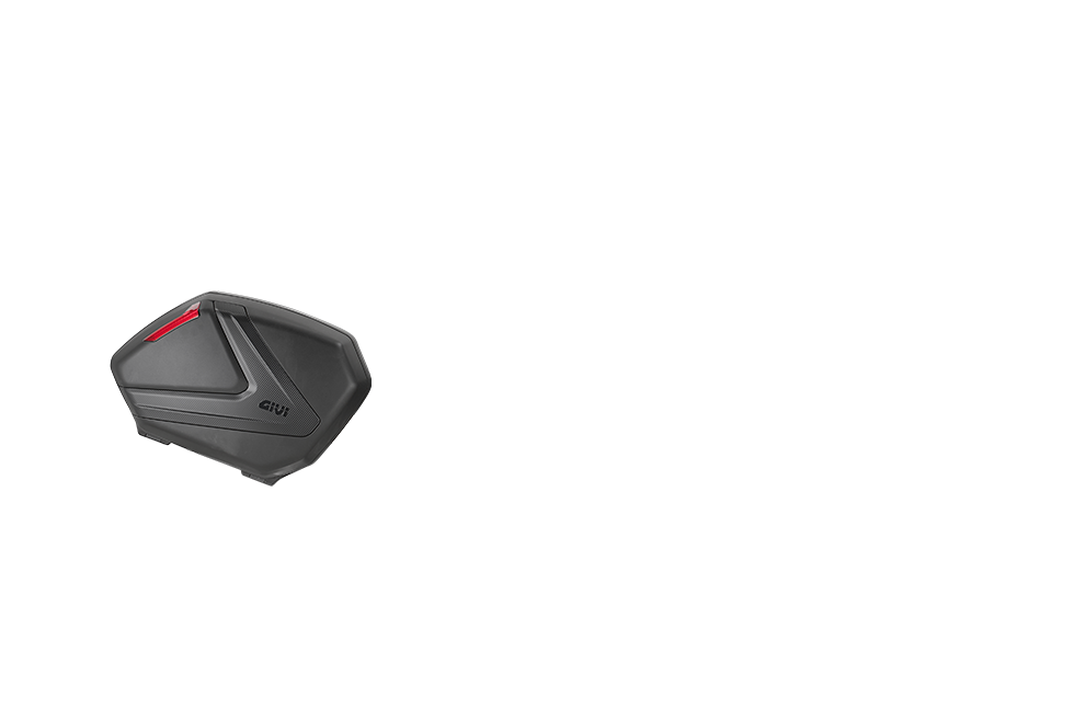 > INFOCoppia di valigie laterali V35 TECH, con cover nera e con catadiottri trasparenti